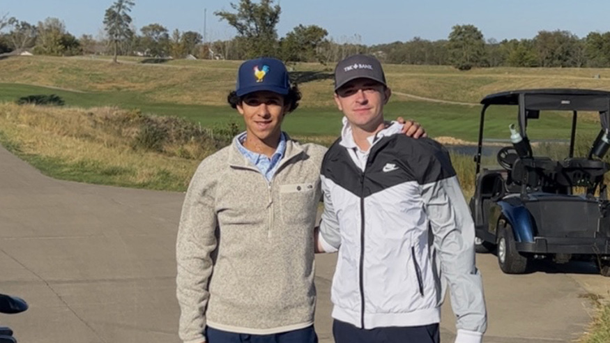 Fernando Peralta '25 and Aiden Heymann '22 battled it out for the IM Golf League Championship this past Monday at Fyre Lake Golf Club in Sherrard, Ill. Competition occurred amongst 20 golfers over a six-week period this fall, with the majority of the nine-hole weekly matches played locally at Saukie Golf Course in Rock Island. Peralta emerged victorious with a 3 and 2 (up three holes with two to play). Both had a great time despite the windy conditions and a challenging course!