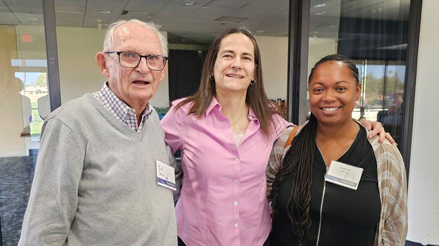 President Andrea Talentino poses with the oldest and youngest alumni who attended a recent luncheon in Phoenix, Ariz. Pictured: Ed Davis '50, President Talentino and Vanessa Kirk '15.