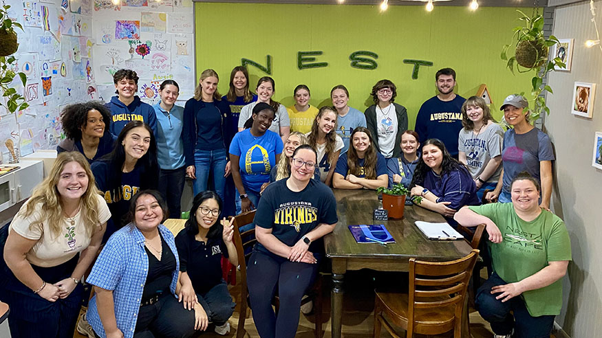 The students of PUBH-350 have been conducting site visits around the Quad Cities to understand the role of community organizations on promoting healthy behaviors for under-served populations. After a tour of NEST Cafe and guest lecture from Executive Director Laura Mahn (second from right), students enjoyed a lunch from NEST's "pay what you can" cafe. Learn more about NEST Cafe at www.nestcafeqc.org.