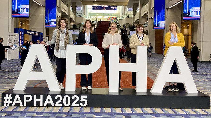Students, faculty and staff attended the APHA Annual Meeting in Washington, D.C., Nov. 1-5 to participate in research presentations, professional workshops, meetings with government officials and networking with Augustana public health alumni in the D.C. area. The theme of the conference was "Making Public Health a National Priority." Pictured: Dr. Lena Hann (Public Health), Nora Sorensen, Anna-Maria Hübel, Keela Sawyer, Beth Ford (CORE).